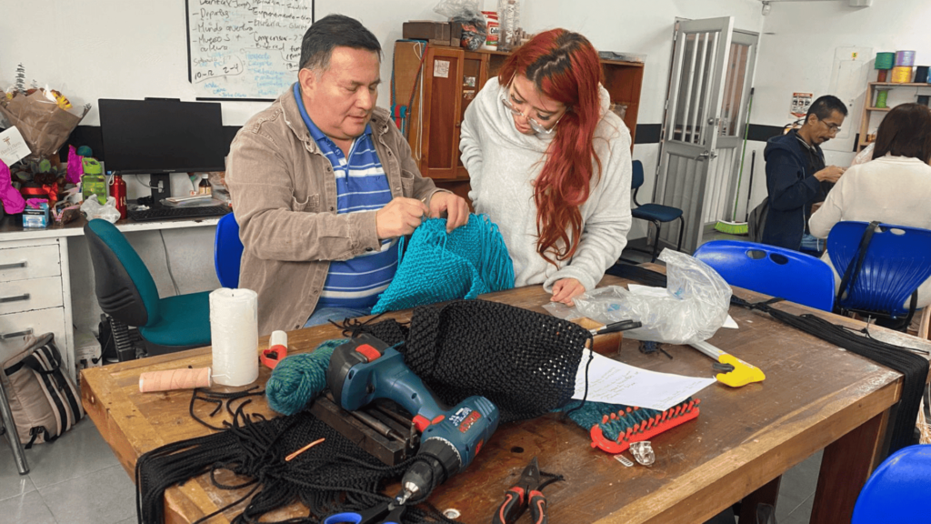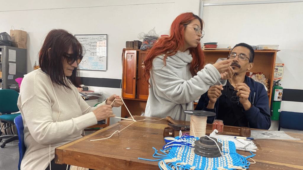 Catalina Esteban: En el taller de inclusión, realizamos una variedad de actividades que, aunque puedan parecer manualidades, tienen un propósito terapéutico más profundo. Por ejemplo, algunos participantes hacen llaveros, macramé, escobas o cajones de madera. Estas actividades no buscan convertir a las personas en vendedores de estos productos, sino que son herramientas para desarrollar su destreza manual, concentración y seguridad. Imagínate la confianza que debe tener una persona ciega para usar un mazo y asegurar una pieza en un trabajo manual. Estas actividades les ayudan a sentirse capaces y a aumentar su autoestima al ver que pueden lograr cosas que nunca pensaron que harían.