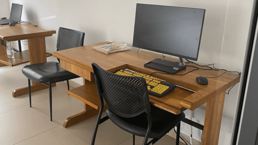 Catalina Esteban: En el área de comunicación, enseñamos braille, aunque en adultos no es tan común su uso como en niños. Para ellos, es más importante aprender a manejar el computador con lectores de pantalla. Colombia tiene un programa llamado CONVERTIC, que permite a personas con discapacidad descargar de manera gratuita la licencia del lector de pantalla JAWS, lo que les permite usar computadoras de forma independiente. También capacitamos a los usuarios en el uso de teléfonos inteligentes mediante comandos de voz o aplicaciones accesibles, como TalkBack o VoiceOver.