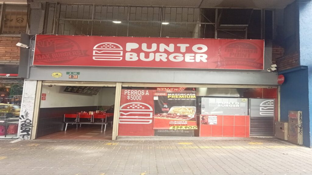 Seguimos nuestro recorrido por otro de los restaurantes más frecuentados por los estudiantes; Punto Burger. Esta cadena de restaurantes, quienes no tienen ni una, ni dos, sino varias sedes distribuidas por la ciudad pero sobre todo en el centro de Bogotá, es un lugar bastante económico, que además de contar con instalaciones considerablemente ampliasy adecuadas para que los universitarios y su grupo de amigos puedan sentarse a comer a gusto, tiene en su menú productos, variados, deliciosos y acomodados al bolsillo de los jóvenes. La especialidad de este lugar, sin duda, son las hamburguesas, que generalmente vienen en combo y son perfectas para los breaks que a menudo se suelen hacer eternos entre clase y clase.